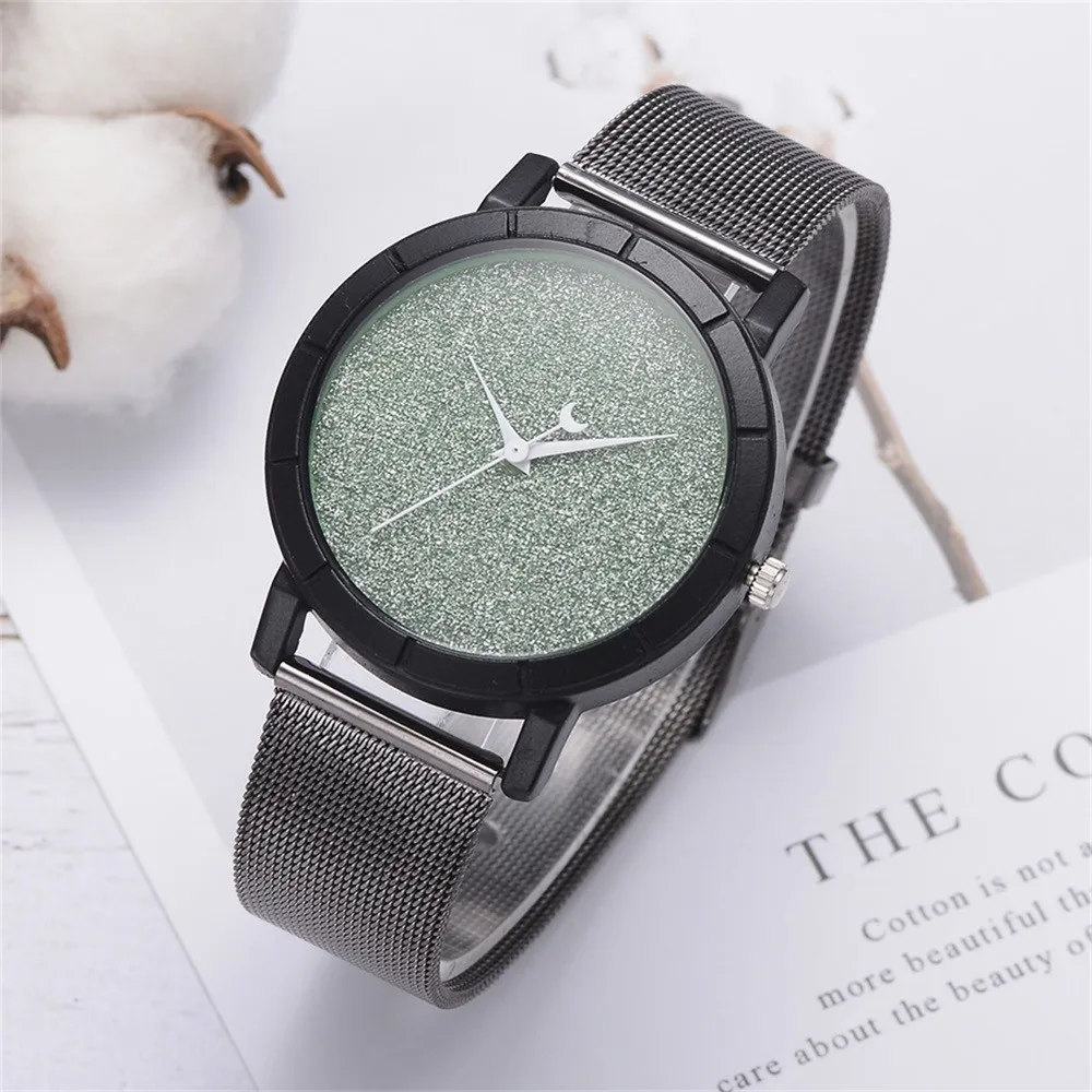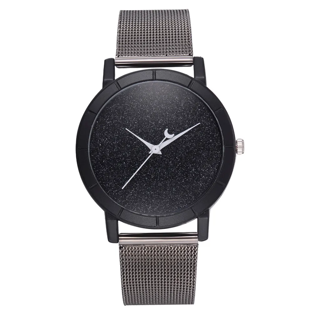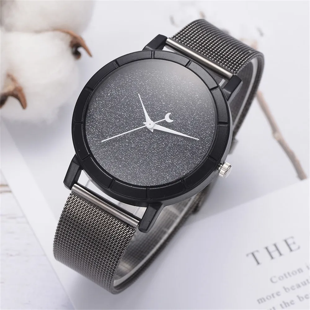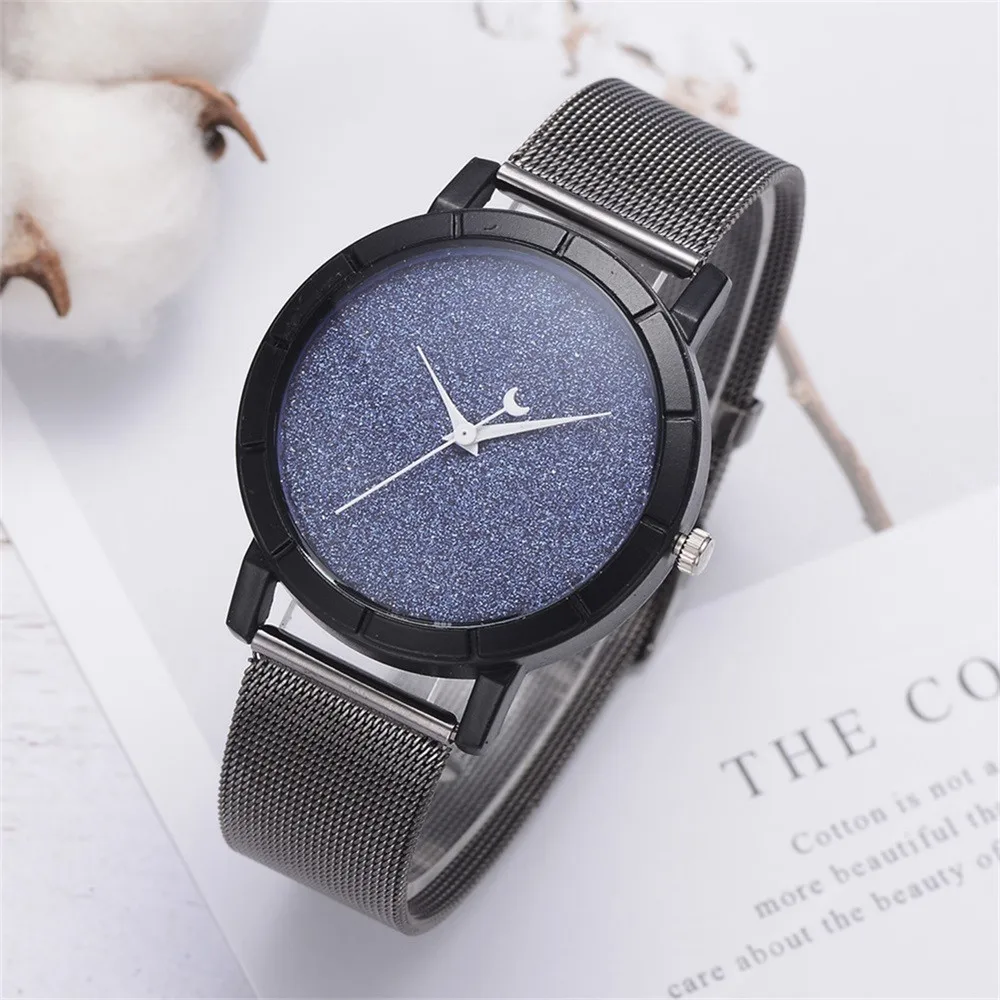 Женские блестящие Кварцевые часы с кожаным ремешком со стрелками Луны, аналоговый наручные часы