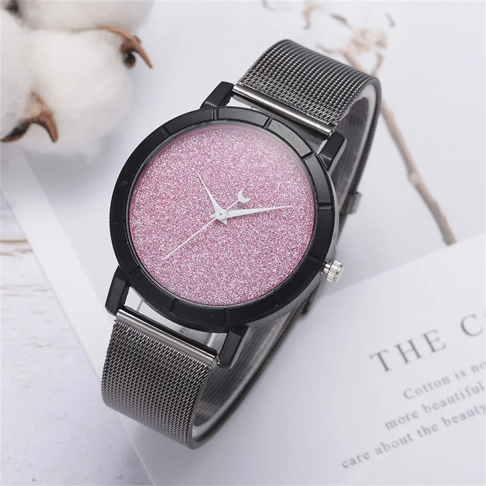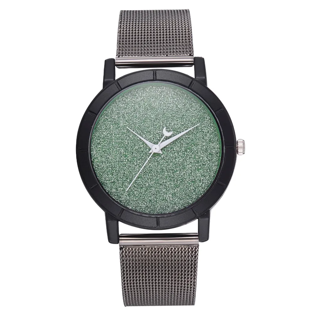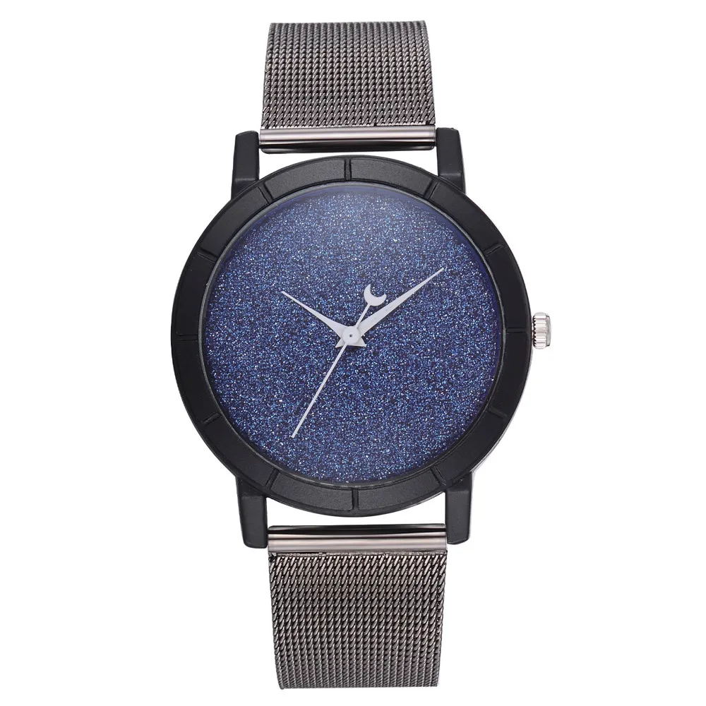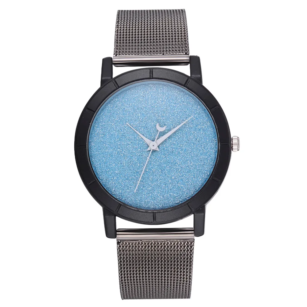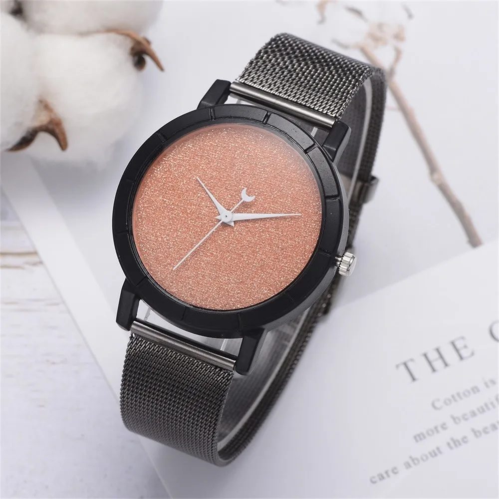 Женские блестящие Кварцевые часы с кожаным ремешком со стрелками Луны, аналоговый наручные часы