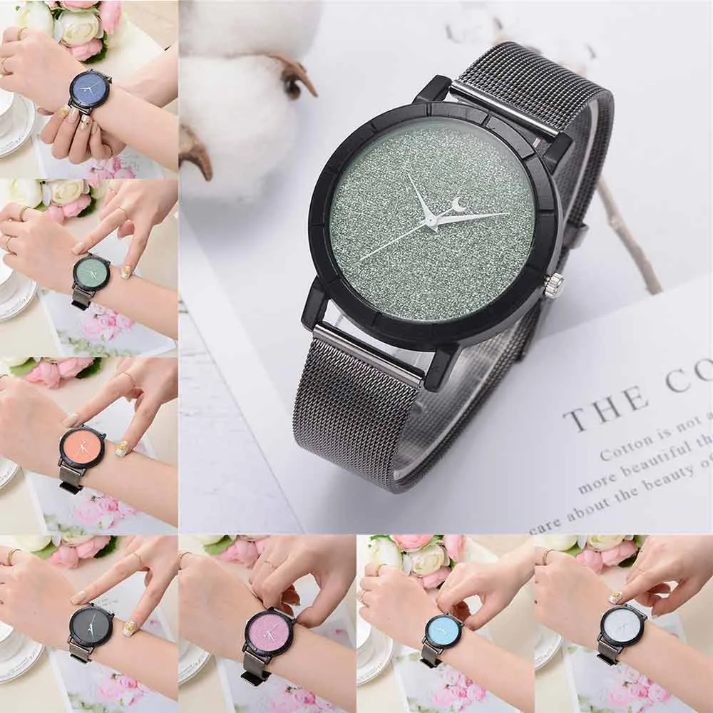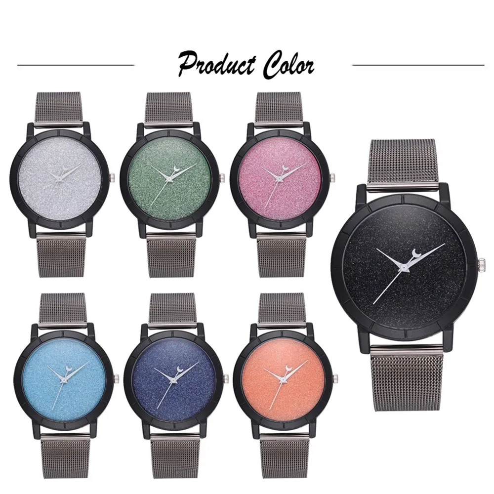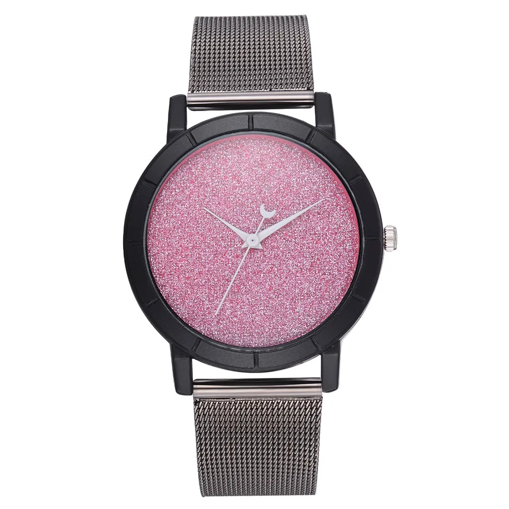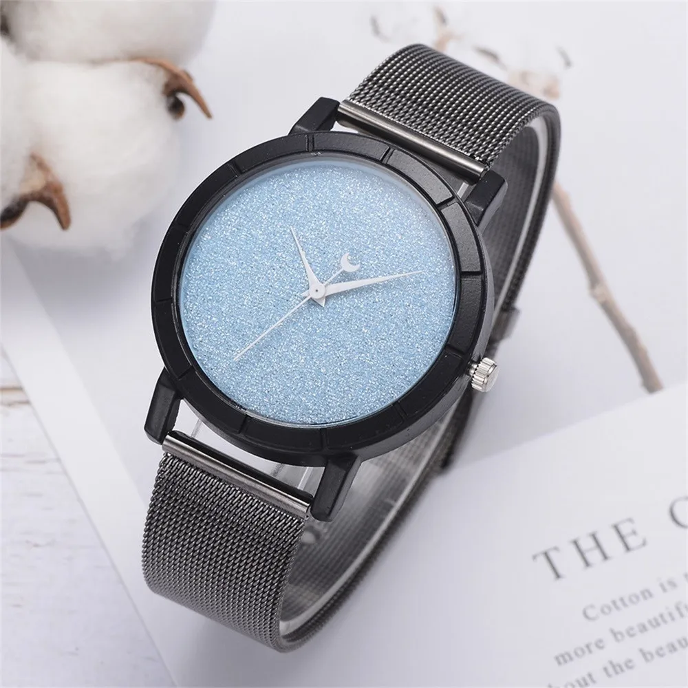 Женские блестящие Кварцевые часы с кожаным ремешком со стрелками Луны, аналоговый наручные часы