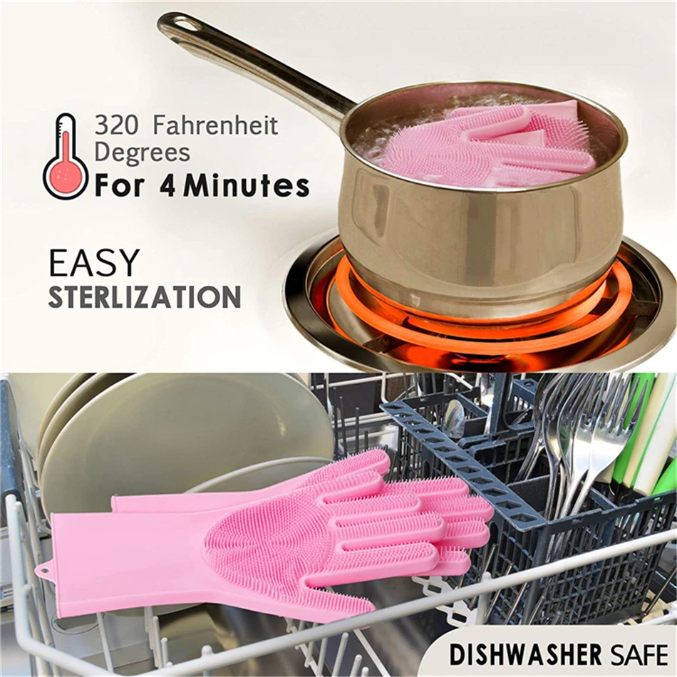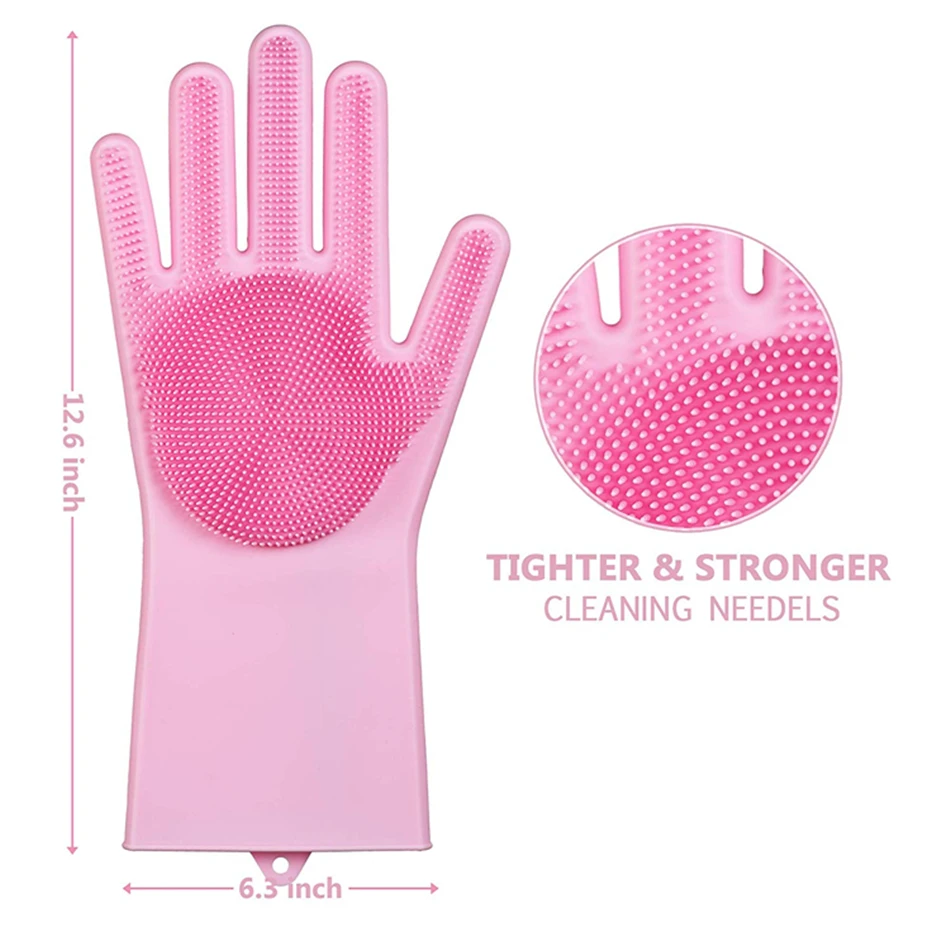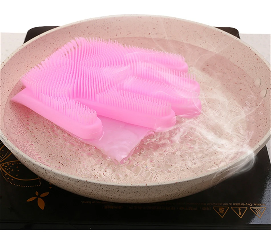 2. Выдающаяся очистка: ладони и пальцы покрыты толстой силиконовой щетиной ведьма может быстро смывать масляное пятно и держать сильный захват, конечно, никакого вреда для кухонной утвари