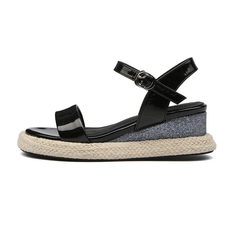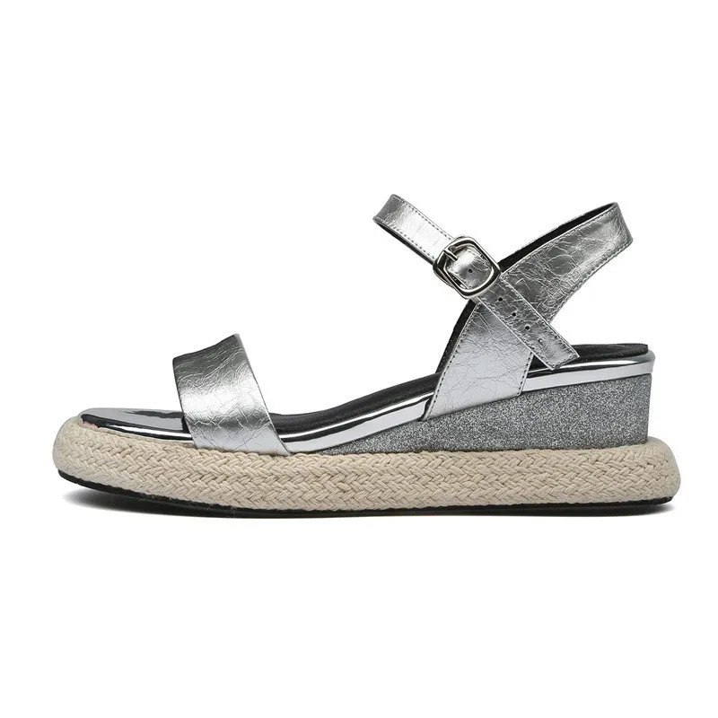 Женская обувь на платформе Босоножки на платформе Летние босоножки из натуральной кожи новинка 2019 Ремешок на щиколотке женская повседневная обувь черный, серебристый цвет Дамские сандалии D004