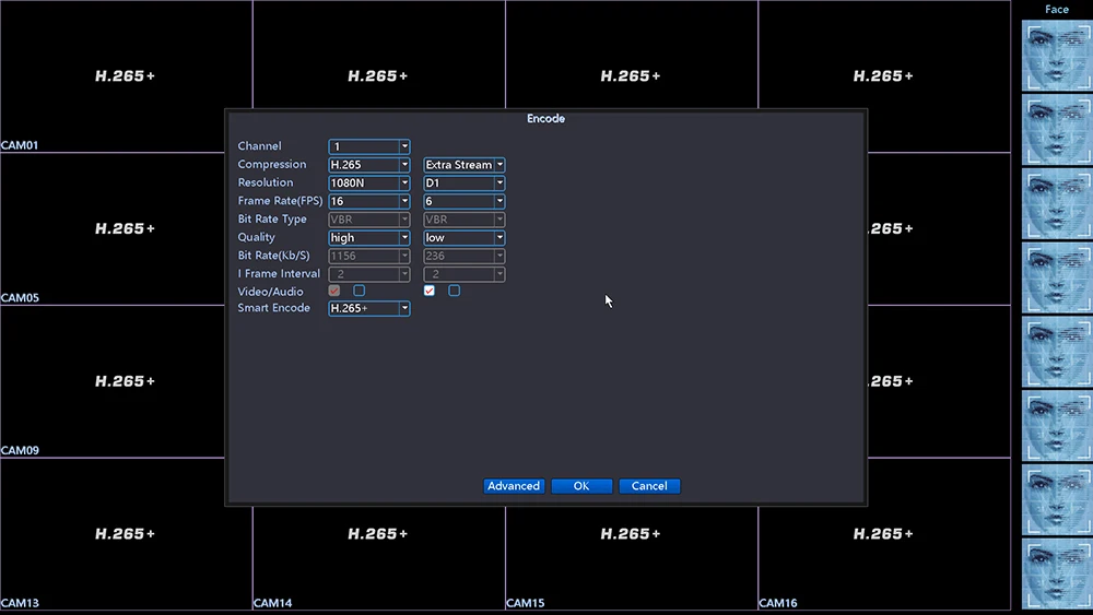 Это AHD H.265, не такой, как IP H.265, не требуется для камеры, если ваша камера является AHD камерой и свяжитесь с этим dvr, это будет H.265 хранения, может сэкономить около 50% оперативной памяти, чем обычный ahd dvr