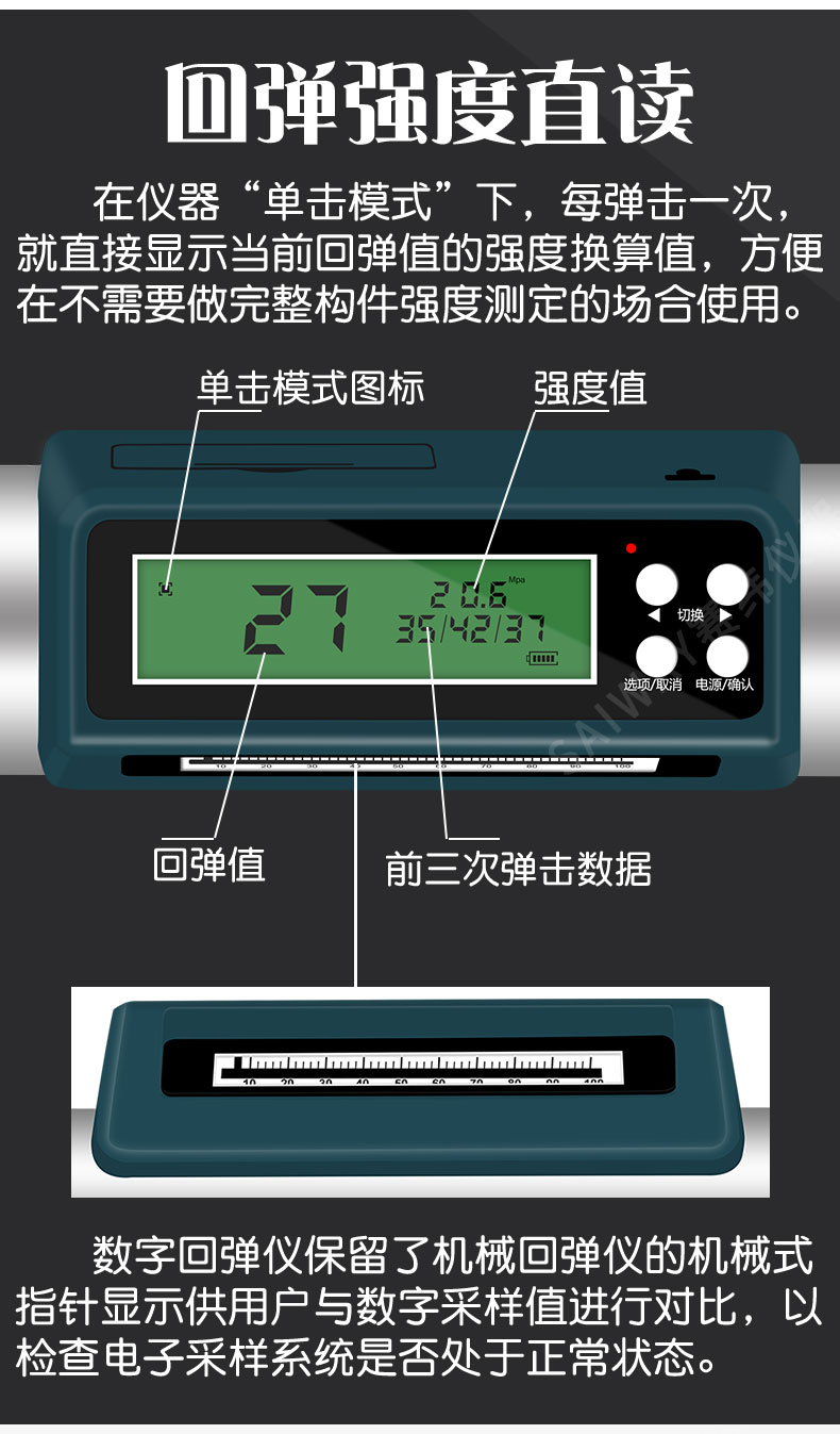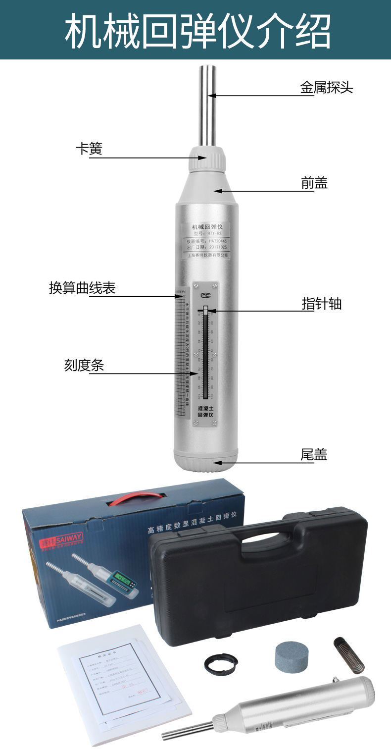 Отскок бетона детектор прочности сжимающий Цифровой Дисплей Механический