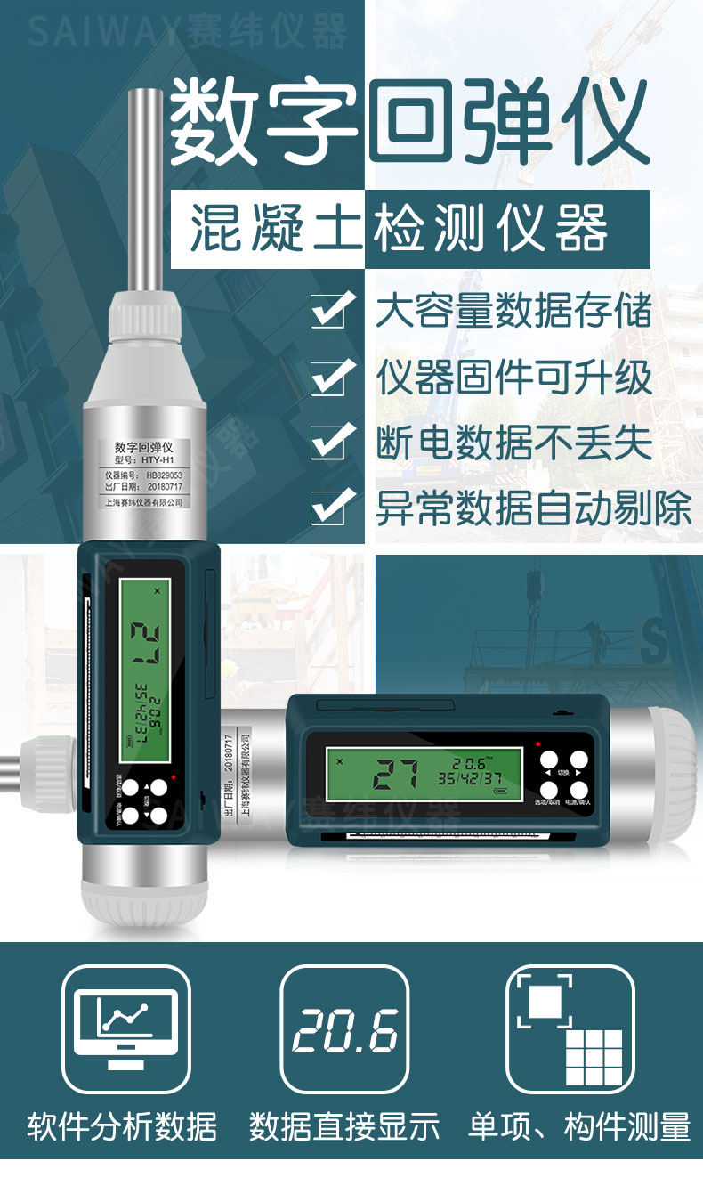 Отскок бетона детектор прочности сжимающий Цифровой Дисплей