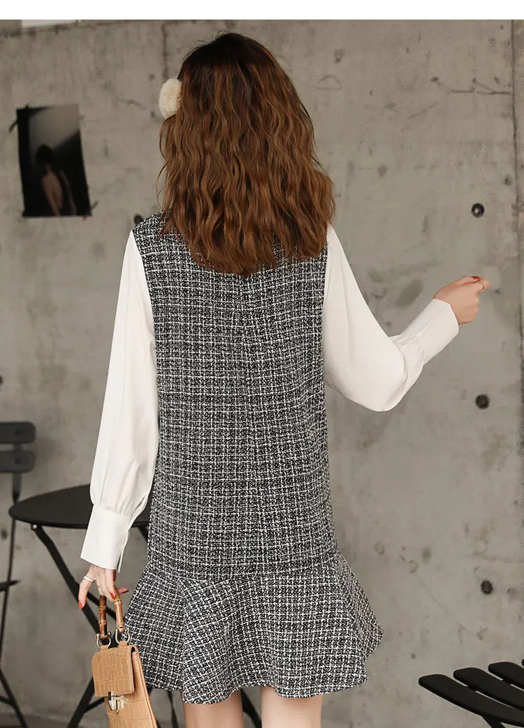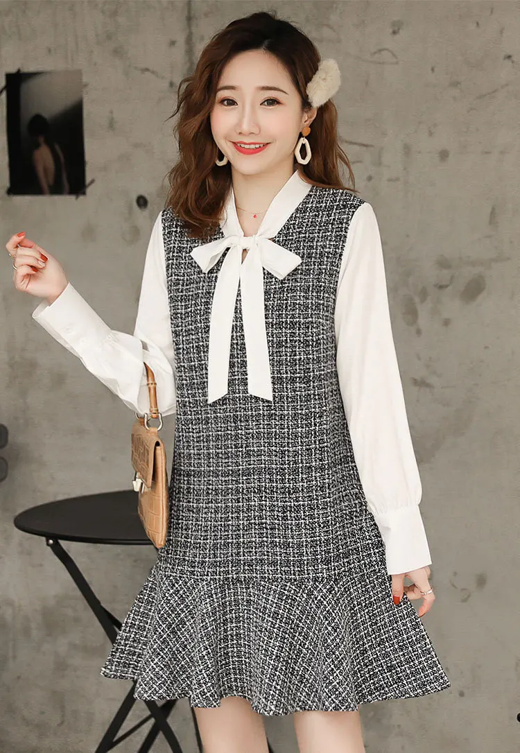 Осень Халаза Ложные две бумажные клетчатые сетки рыбий хвост для беременных