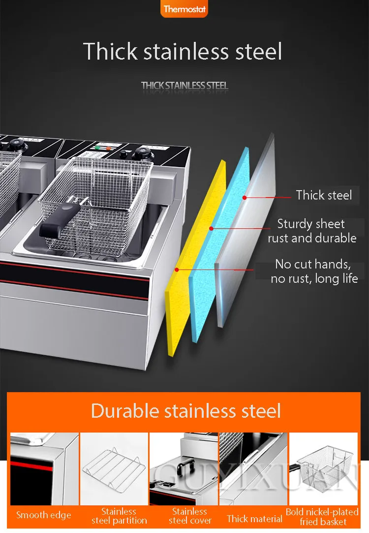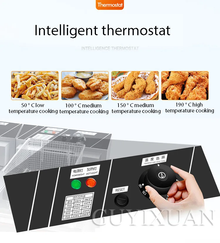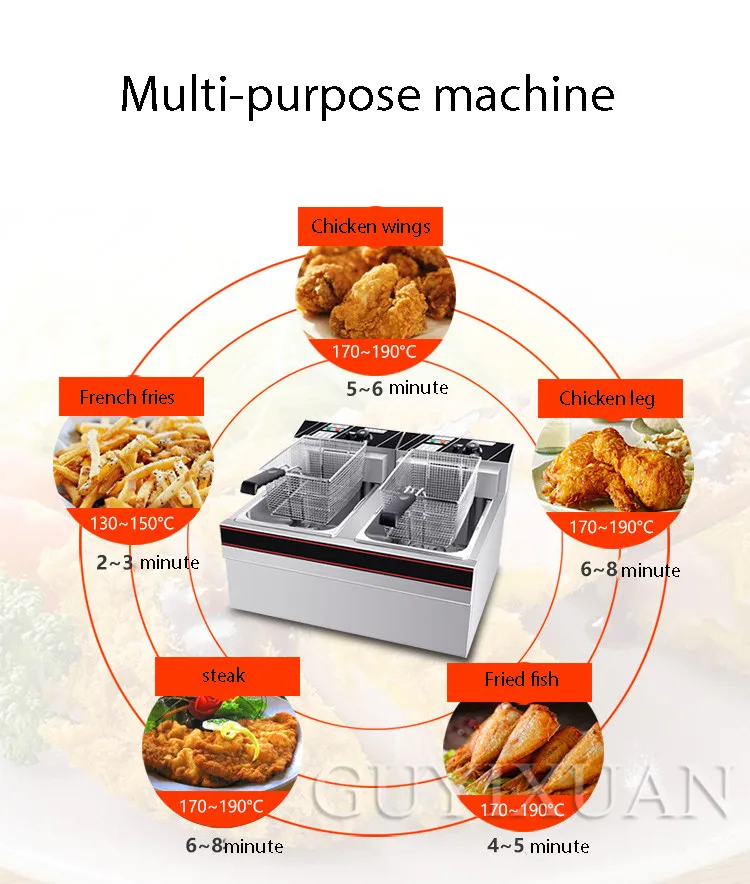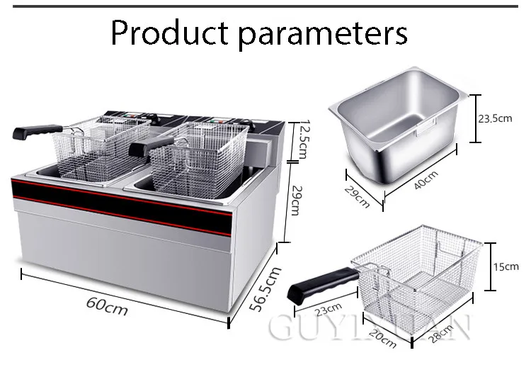 Бренд: GUYX Номинальное напряжение: 230 В Номинальная частота: 50 Гц Номинальная мощность: 4,5 + 4.5KW Диапазон температур: 50 ° C ~ 190 ° C Объем цилиндра: 19л + 19л Вес изделия: 29 кг Размеры: 600*565*430 мм Размер цилиндра: 400*290*23,5 мм Размер сетки: 280*200*150 мм