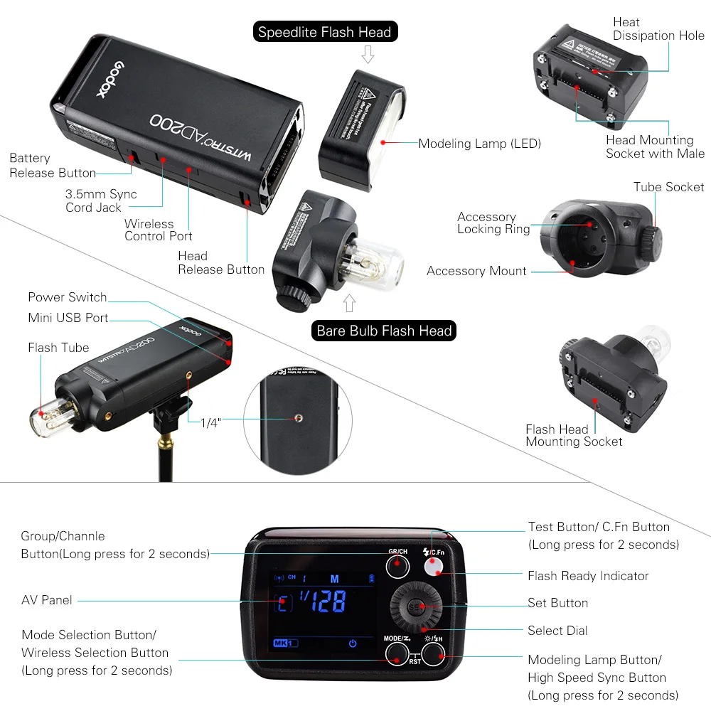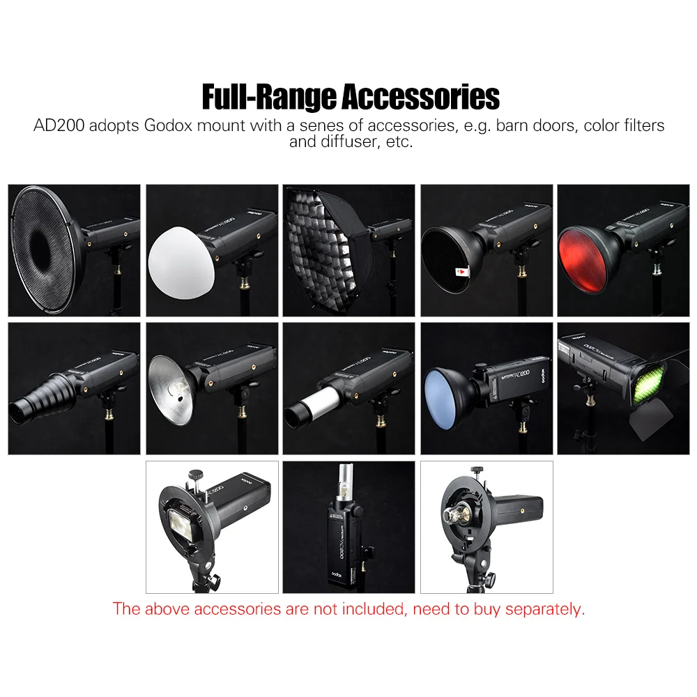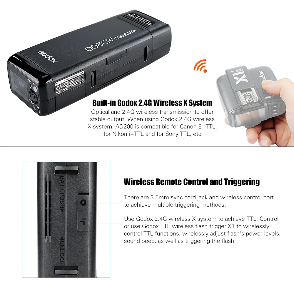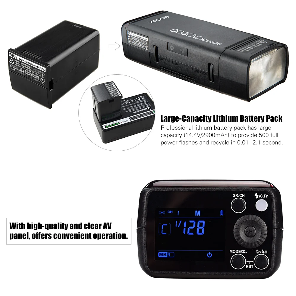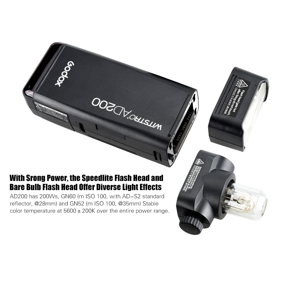 GODOX AD200 TTL 2,4G Вспышка для фотокамер Speedlite HSS 1/8000s эксклюзивная карманная вспышка светильник с двумя головками 200Ws с 2900 мА/ч, литий Батарея стробоскопическая вспышка для цифровой зеркальной камеры Canon Nikon