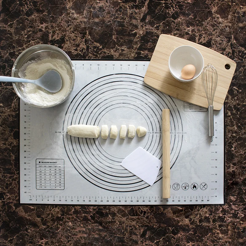 Очень трудно двигаться, когда вы раскатываете тесто и всегда сохраняете стабильность на столе. Супер Кухонный коврик также идеально подходит для выпечки, прилавка, коврик для пиццы, коврик для размещения, детский коврик и так далее.