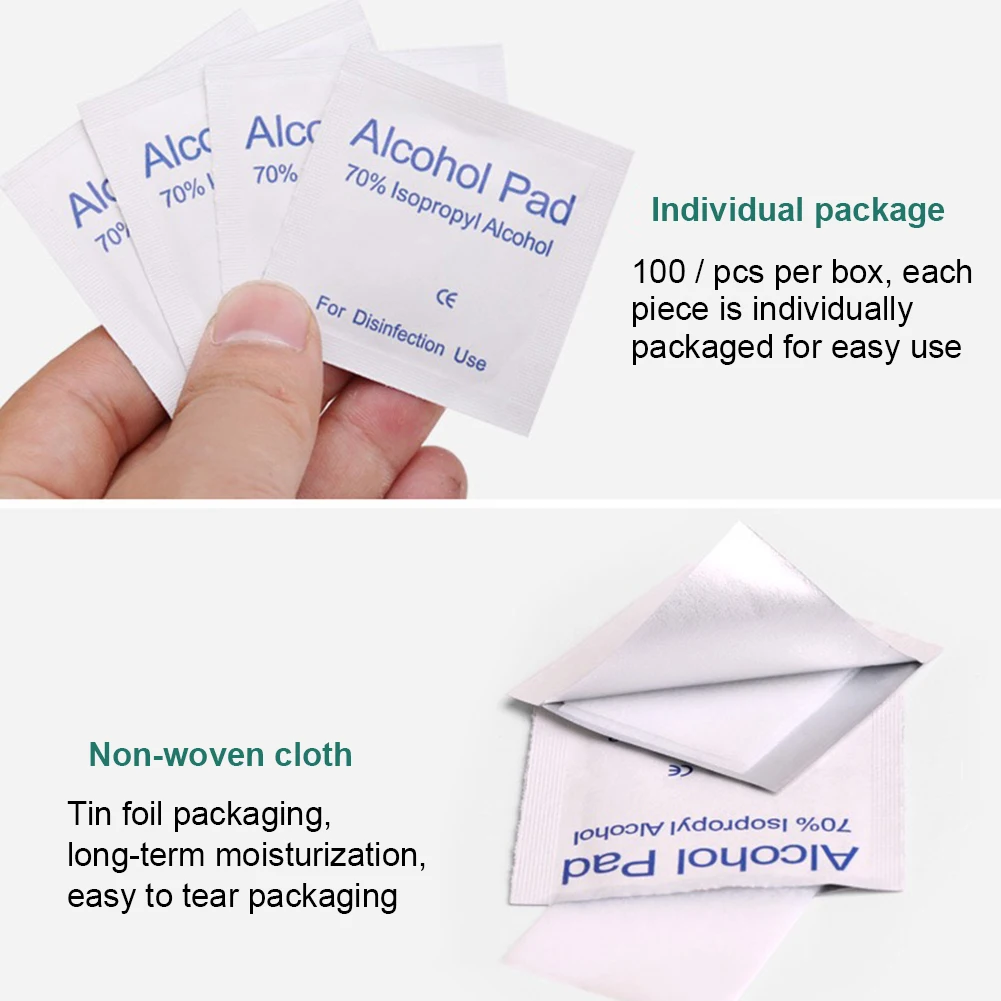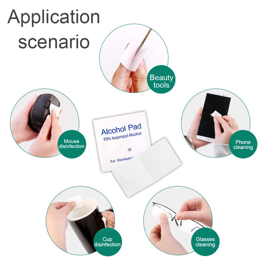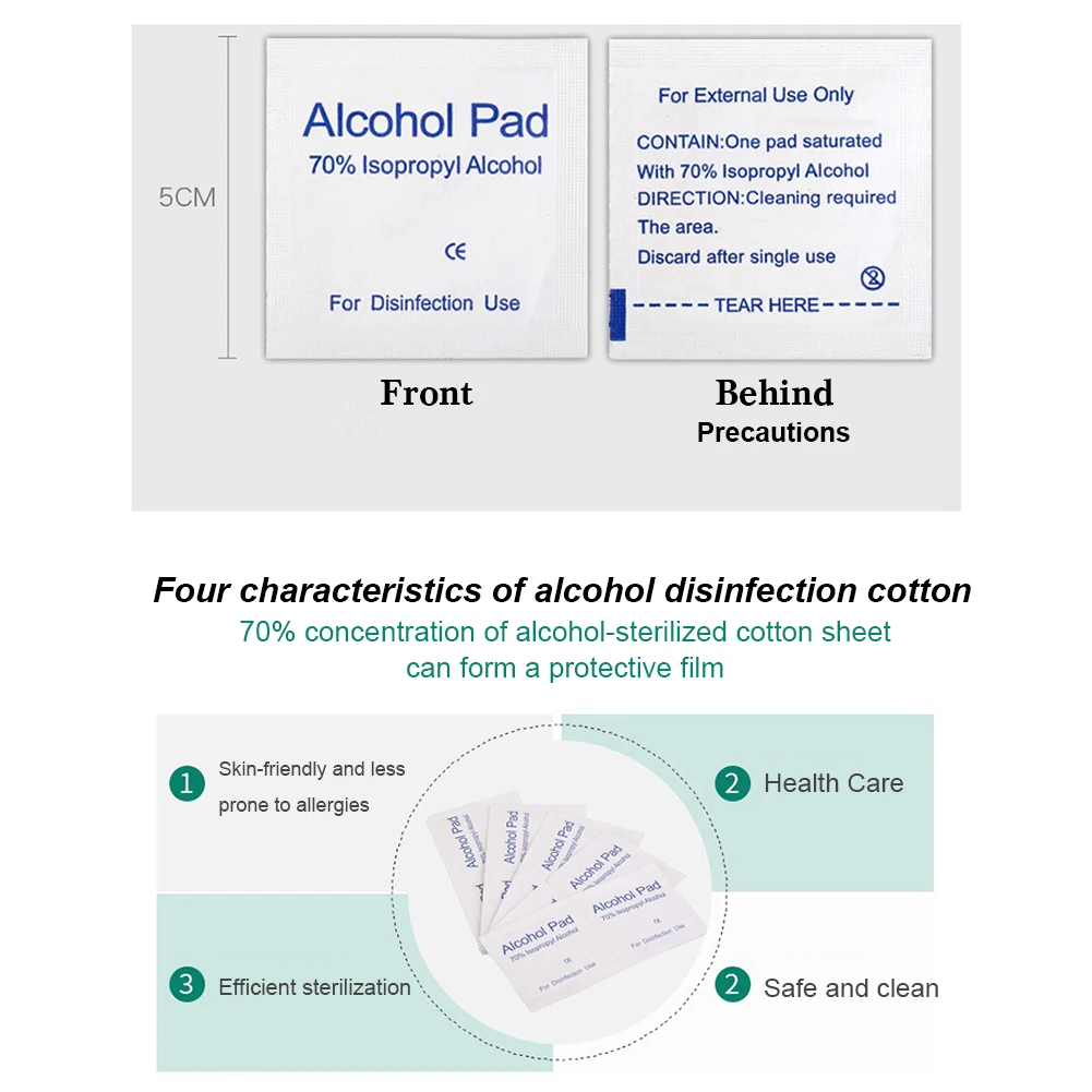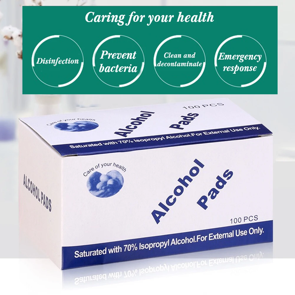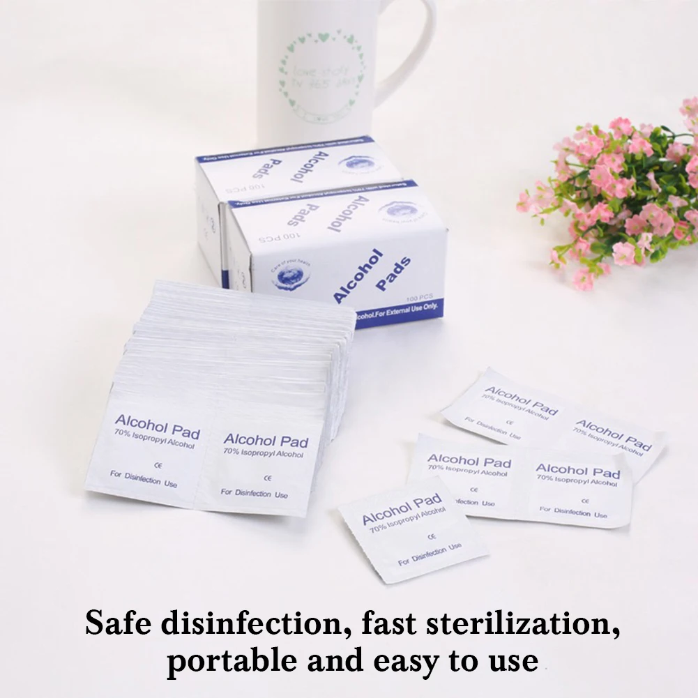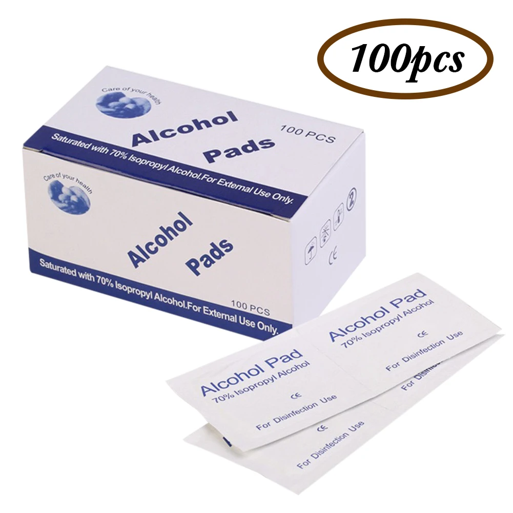 100 шт Одноразовые спиртовые хлопковые салфетки для чистки ногтей, дезинфекционные салфетки, стерилизованные салфетки для дезинфекции