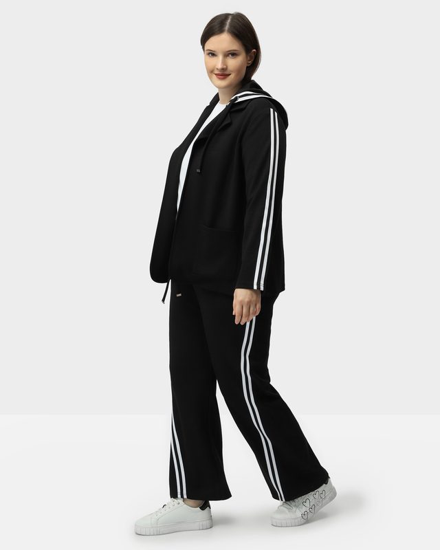 Брюки из эластичной скубы с кулиской по талии и контрастными лампасами
