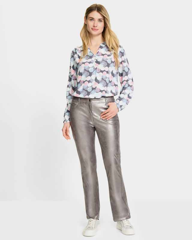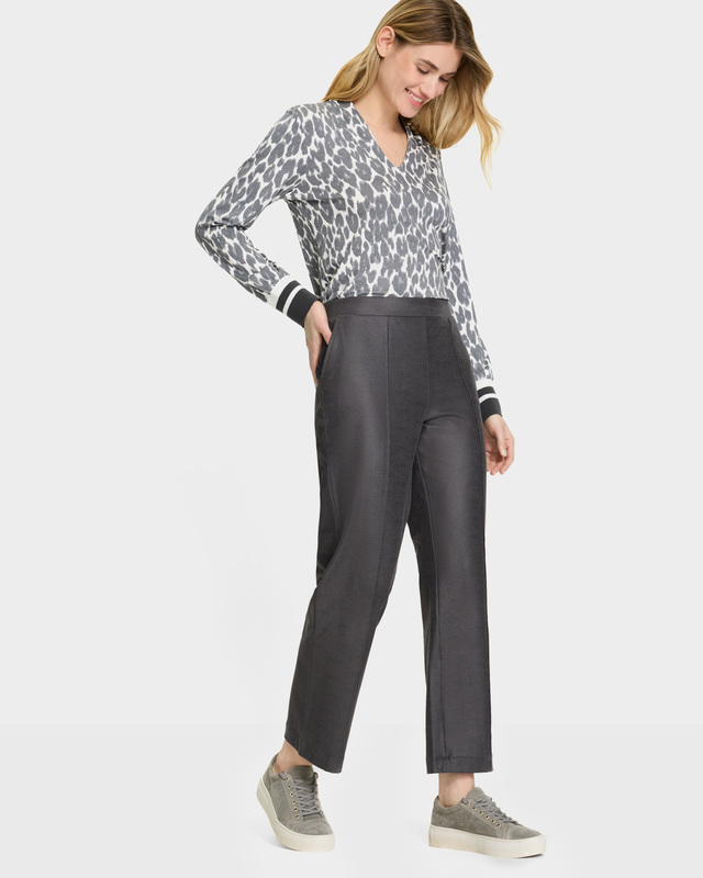 Брюки прямого кроя с жаккардовым узором и застроченными стрелками