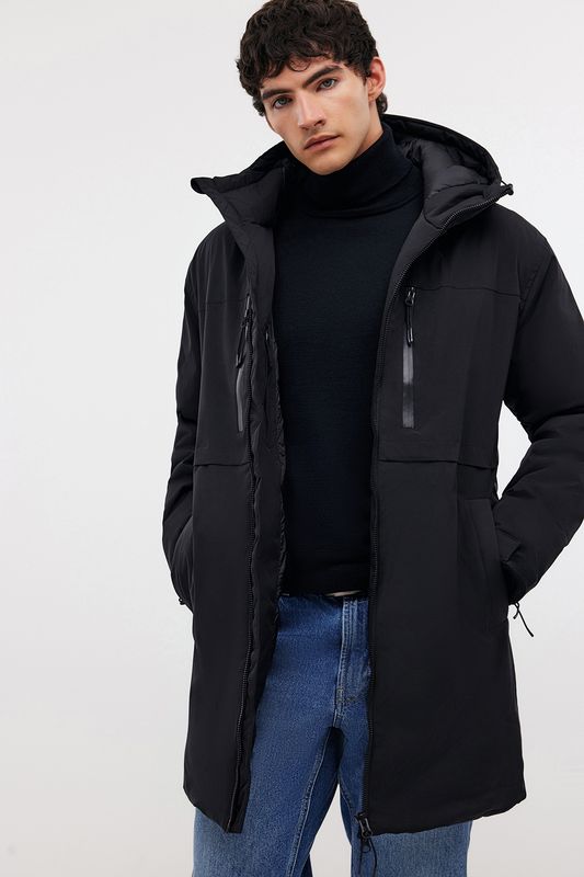 Men s Winter Coat Men s Medium and Long Korean Version Slim-fitting Woolen Coat Thickened Trench Coat 3XL чёрный