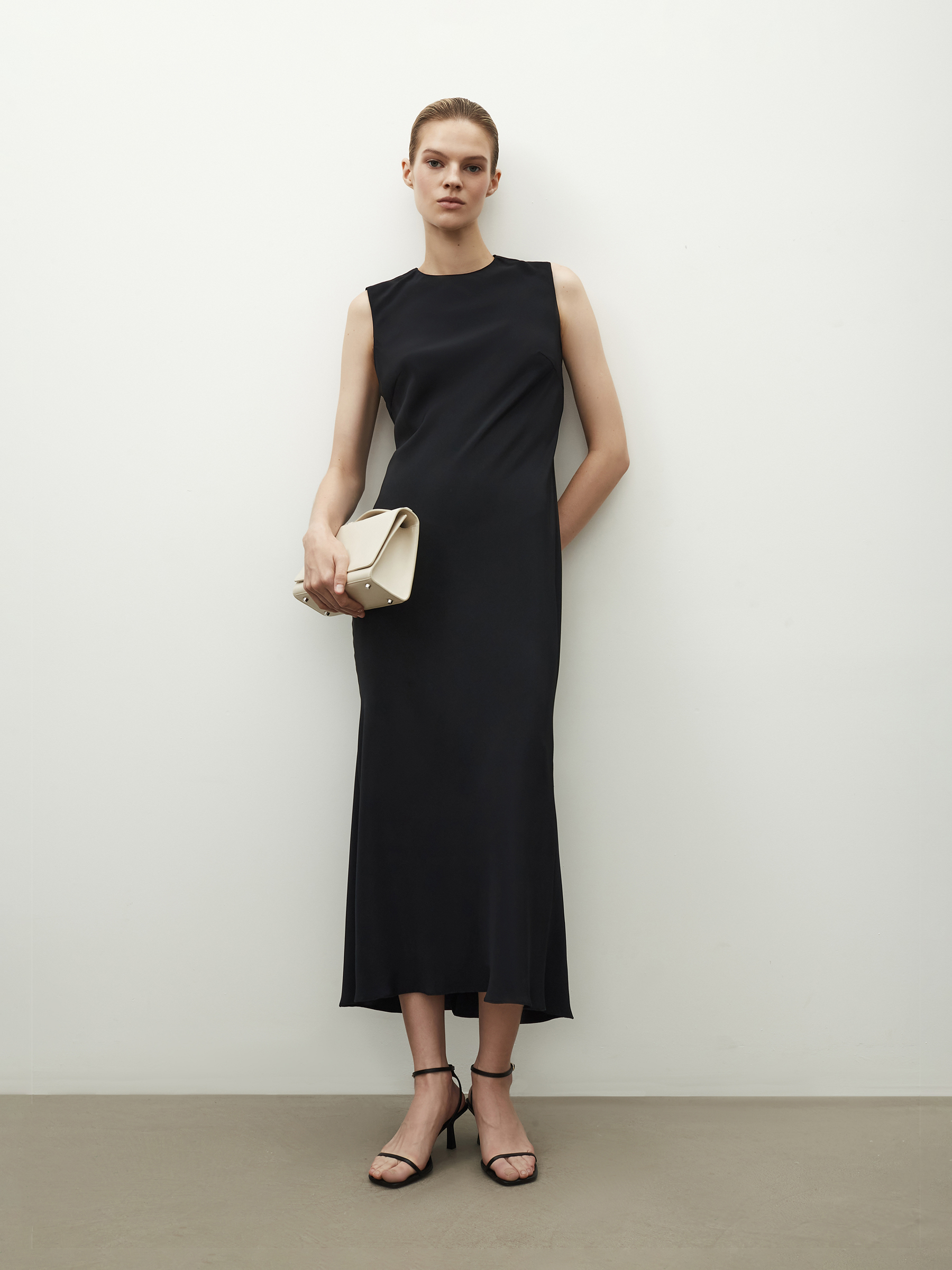 Атласное платье в черном цвете