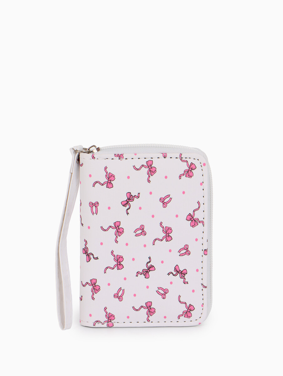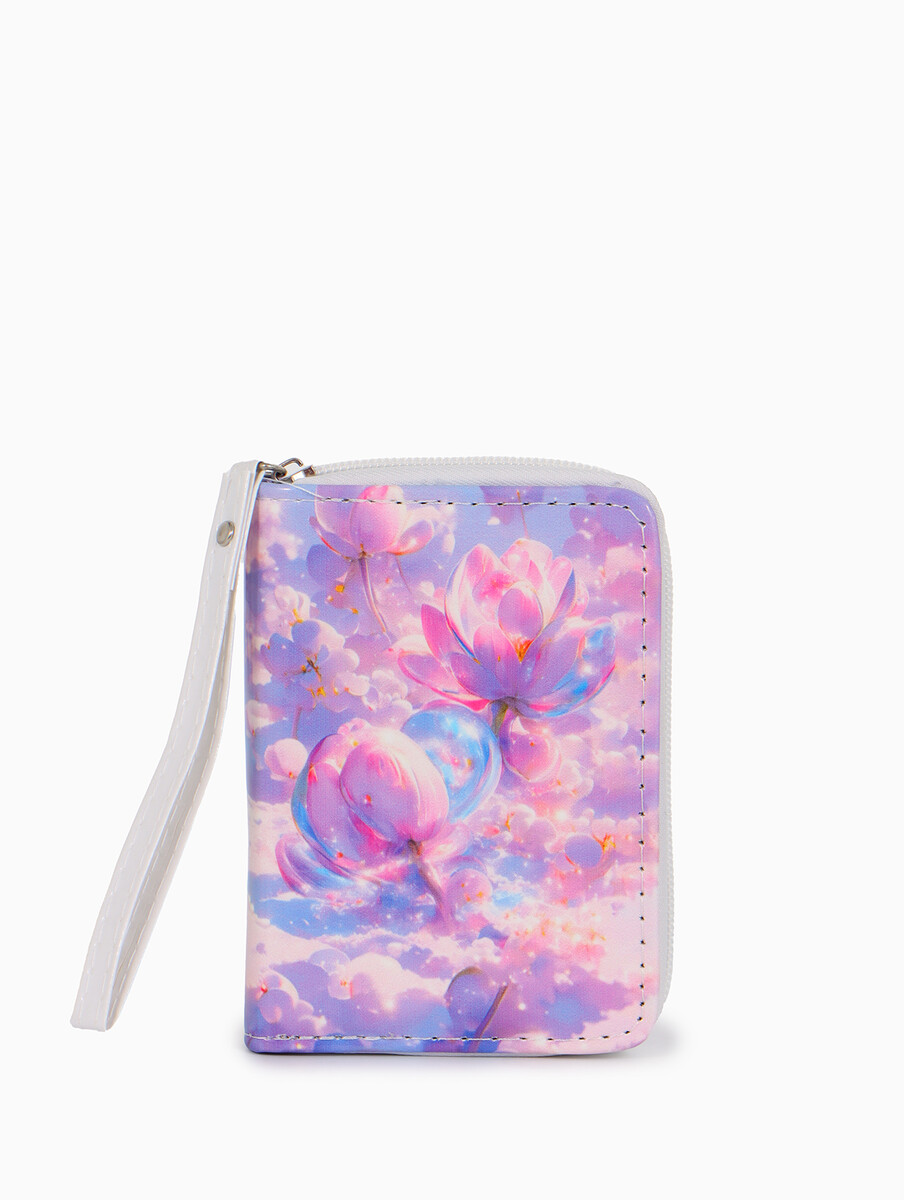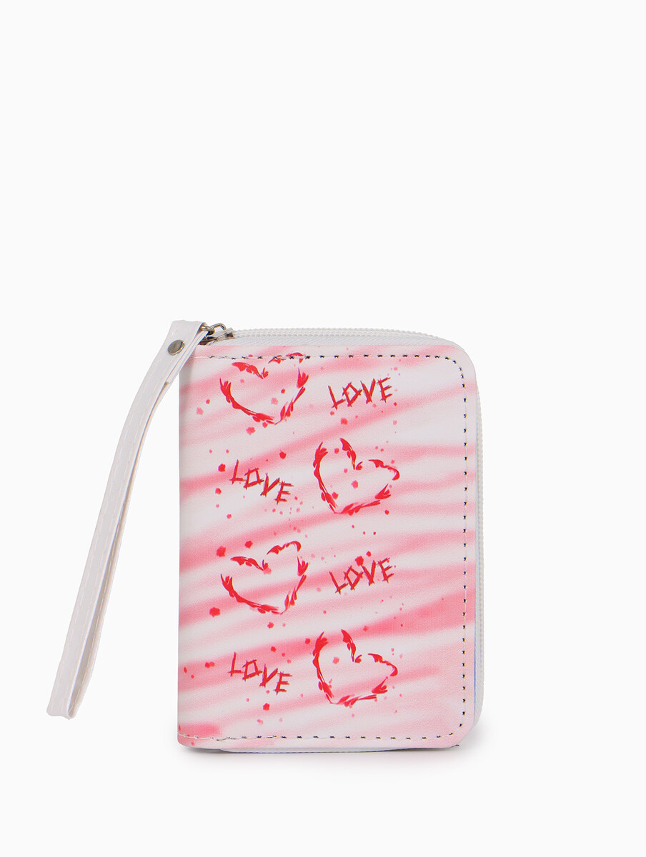 Кошелек на молнии, 12×1.5×9 см, с принтом, белый/розовый