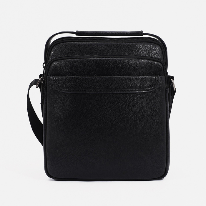 Сумка кросс-боди мужская на молнии, с ручкой, 3 наружных кармана, 23×6×27 см, чёрная