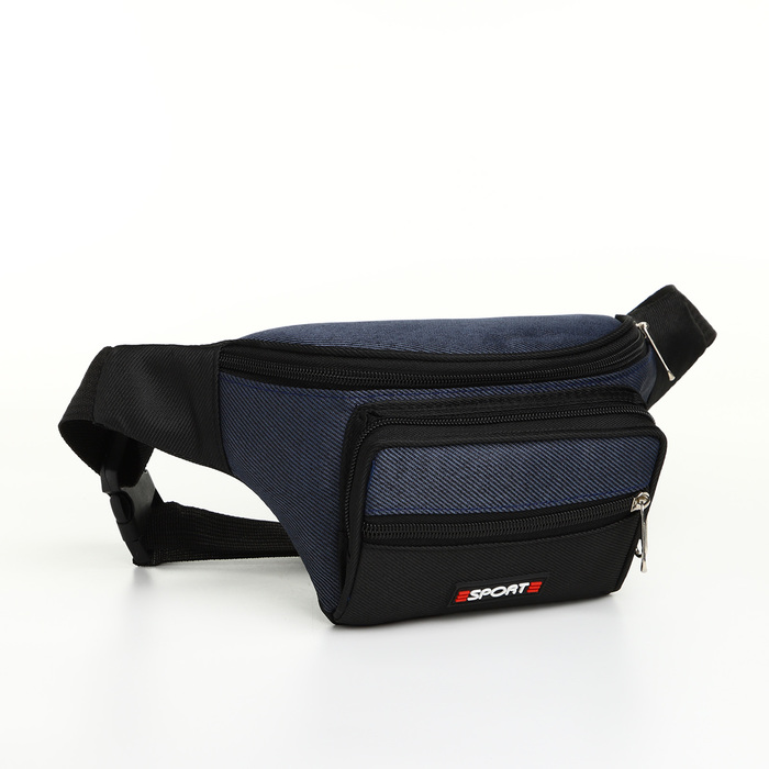 Сумка поясная на молнии, 3 наружных кармана, цвет синий/чёрный