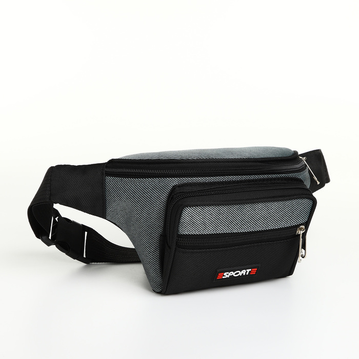 Сумка поясная на молнии, 3 наружных кармана, цвет серый/чёрный