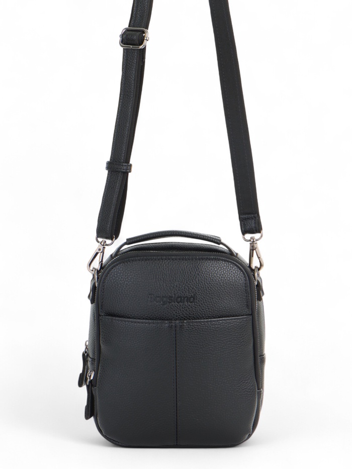 Сумка кросс-боди мужская Bagsland на молнии, 2 наружных кармана, с ручкой, длинный ремень, 19×5×27 см, чёрная