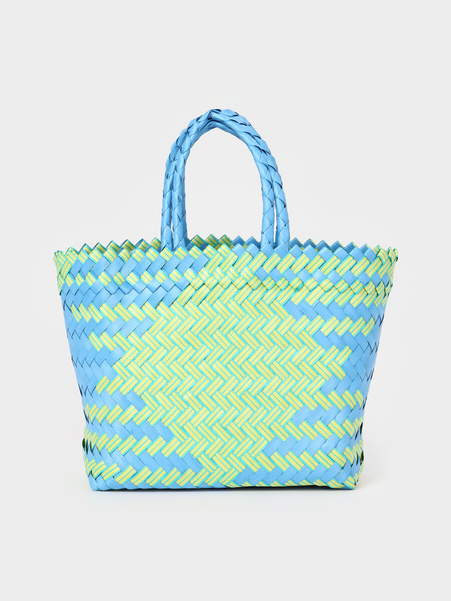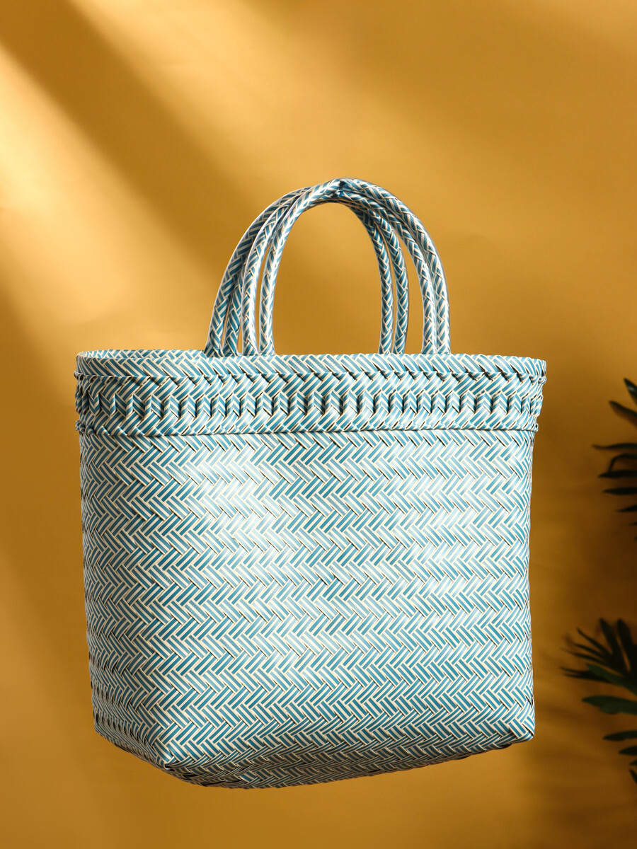 Сумка плетеная пластиковая 30х15х35 см, цв. бело-голубой