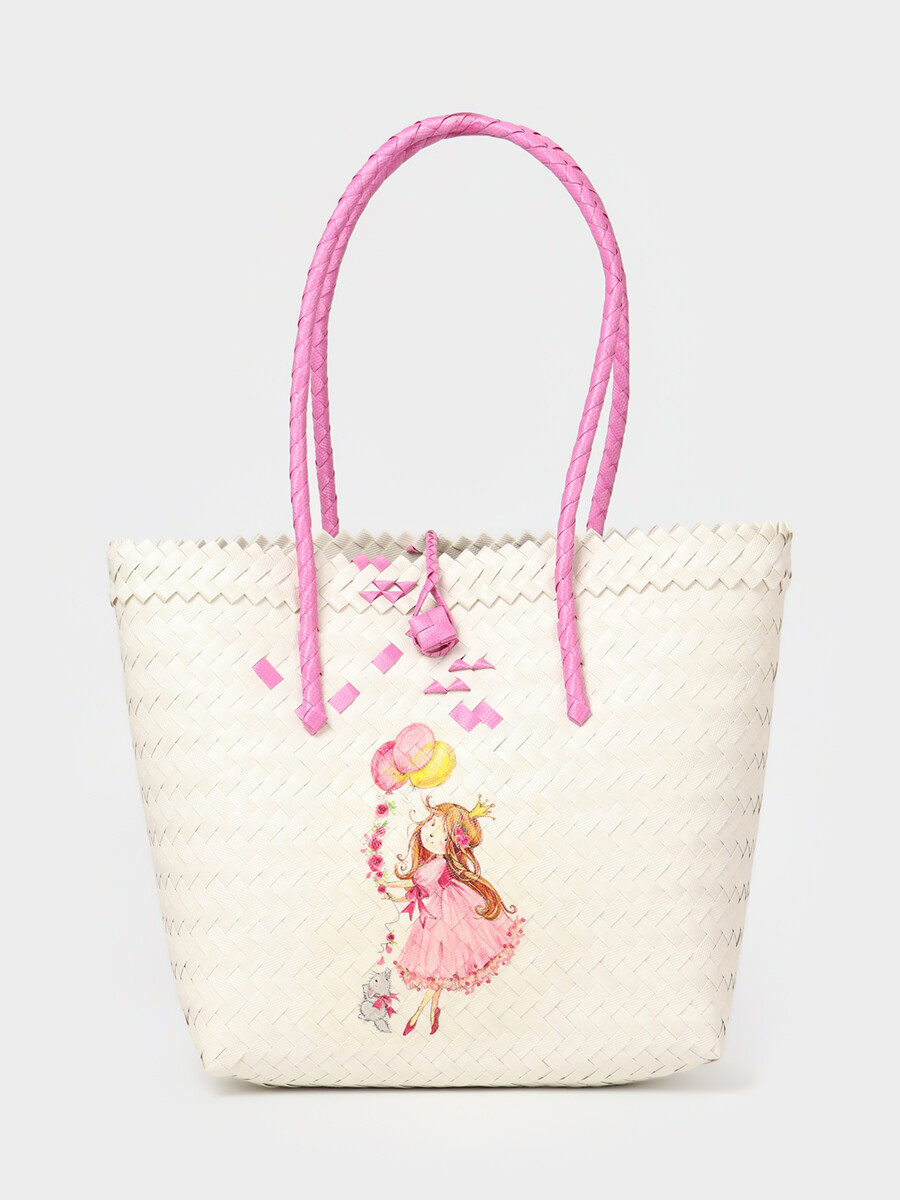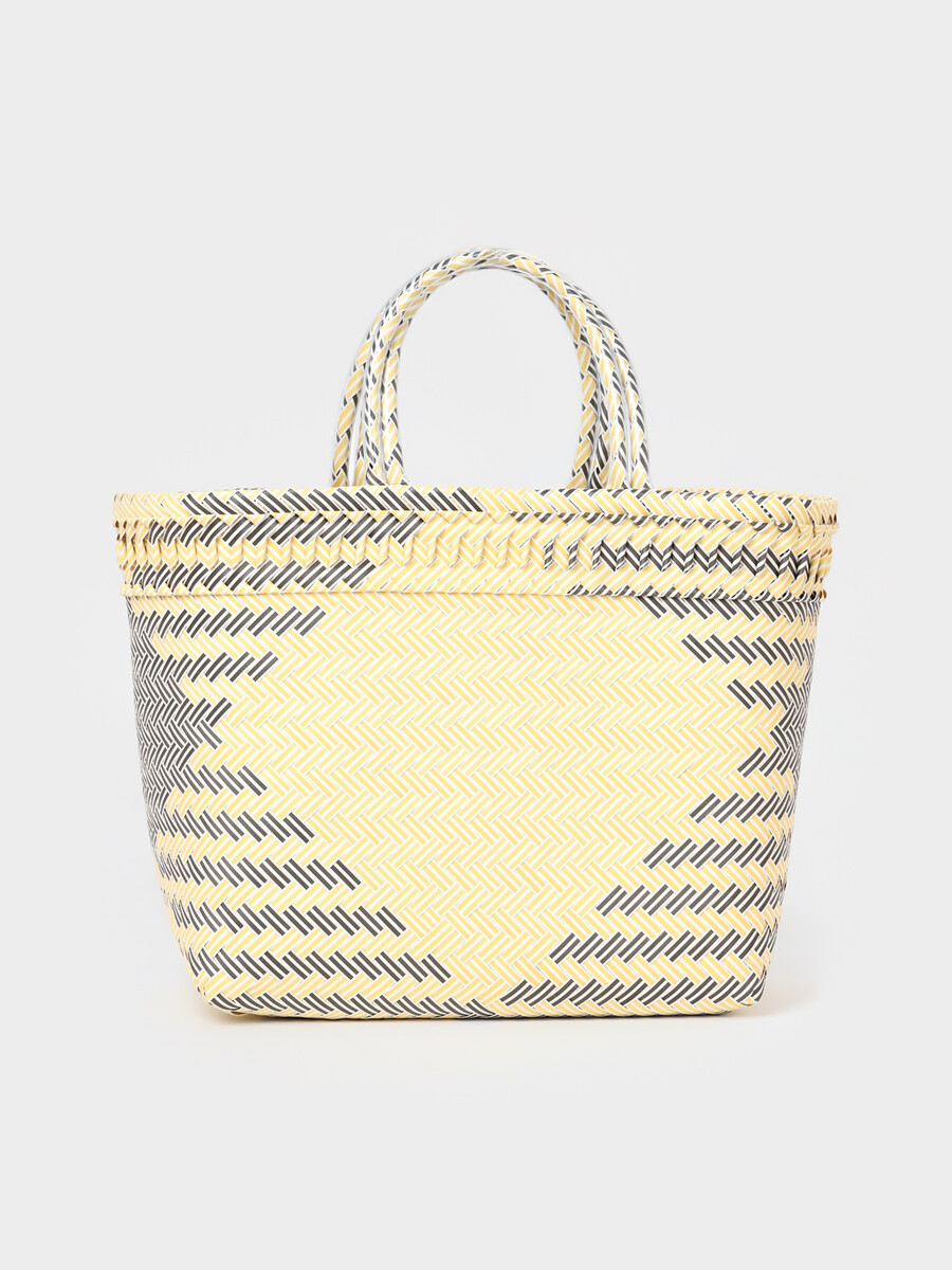 Сумка плетеная, 30×15×35 см, пластик, бежевая с черно-белыми вставками
