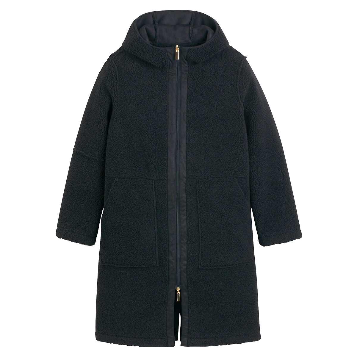 Пальто средней длины из шерпы с пришитым капюшоном 44 (FR) - 50 (RUS) черный