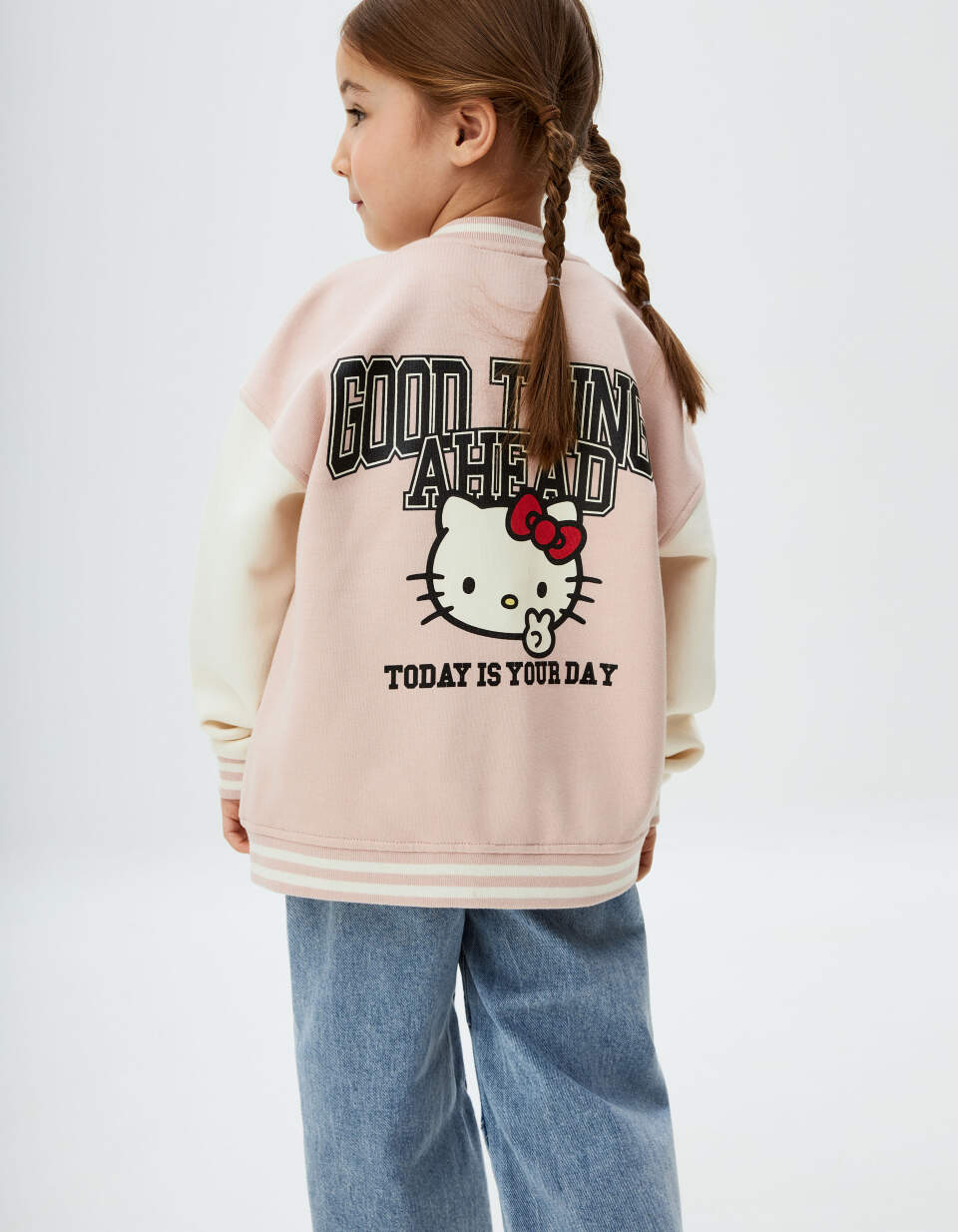 Бомбер в стиле преппи с принтом Hello Kitty для девочек