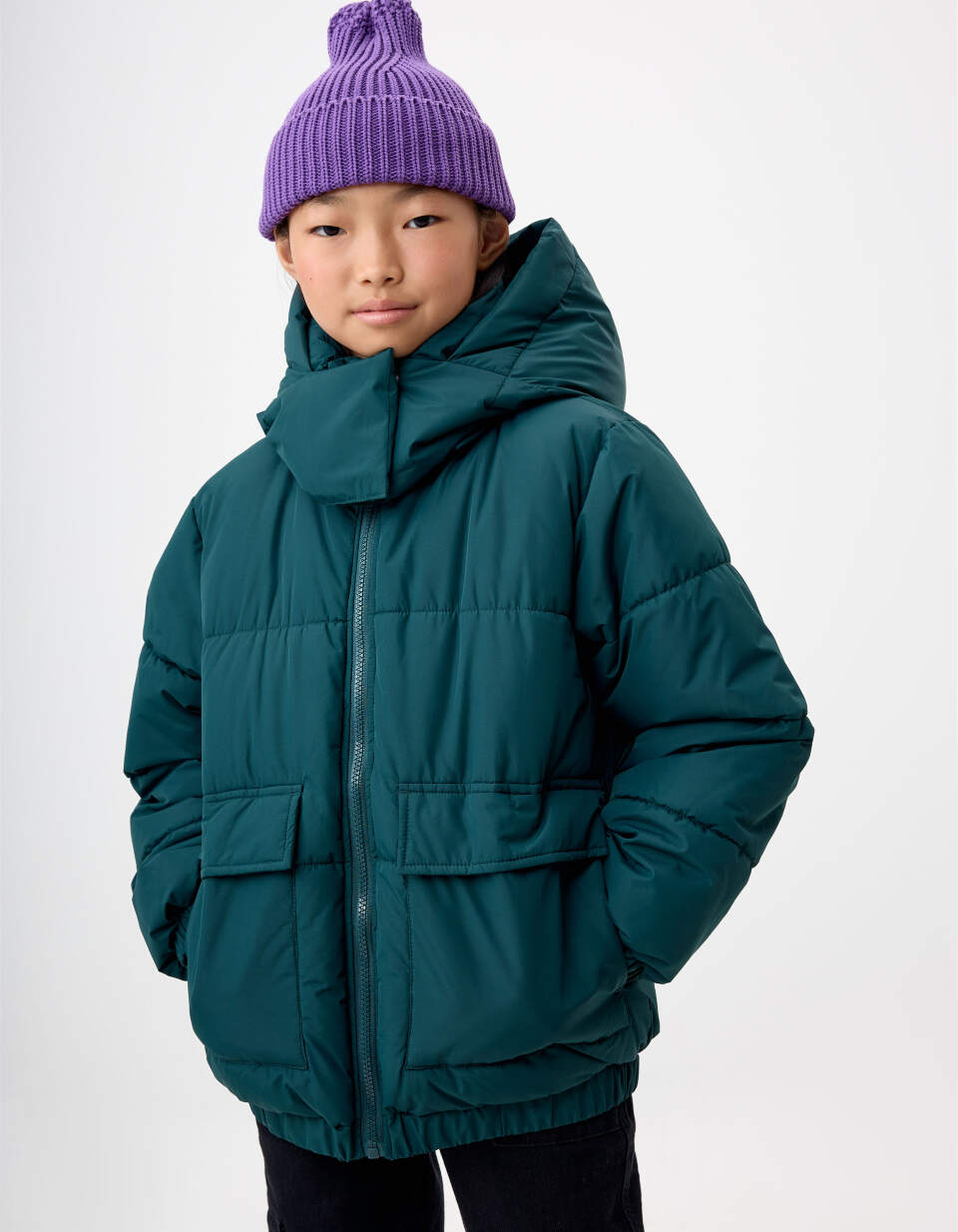Короткий пуховик с капюшоном 12 лет -150 см черный