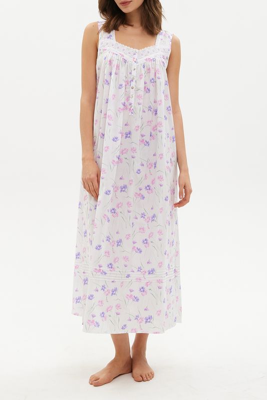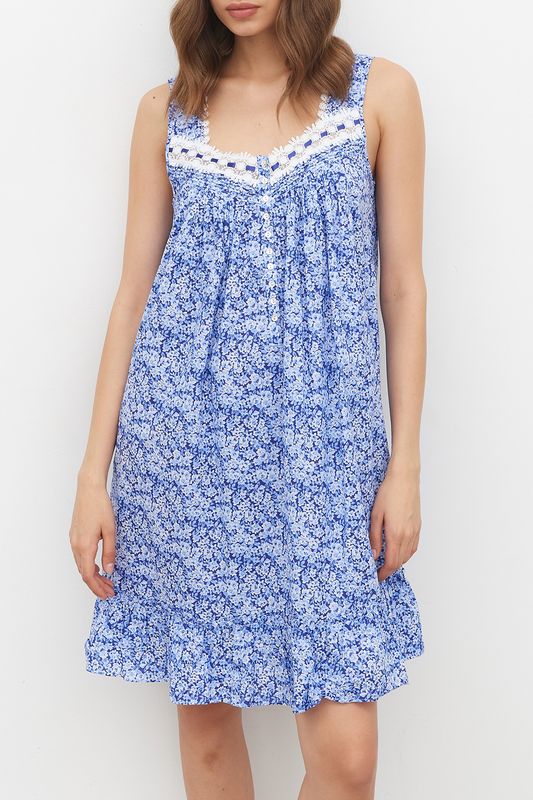 Ночная сорочка хлопковая с кружевом и принтом Eileen West
