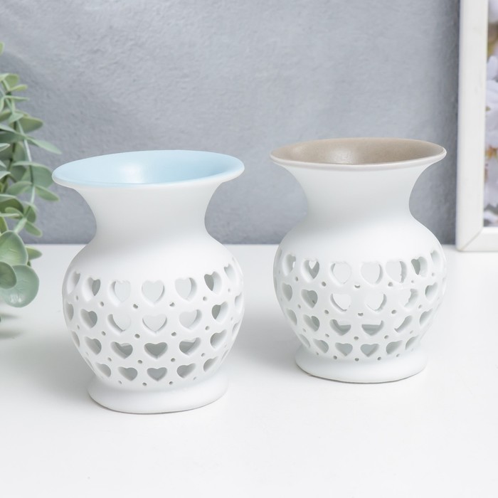Аромалампа для эфирных масел «Сеточка из сердец», керамика, 9×7.5×7.5 см, МИКС