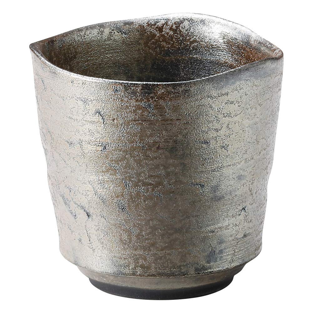 Marui Seito Shigaraki Ware Hechimon Sake Cup in Wooden Box with Silver Crystal Finish MR-3-3004