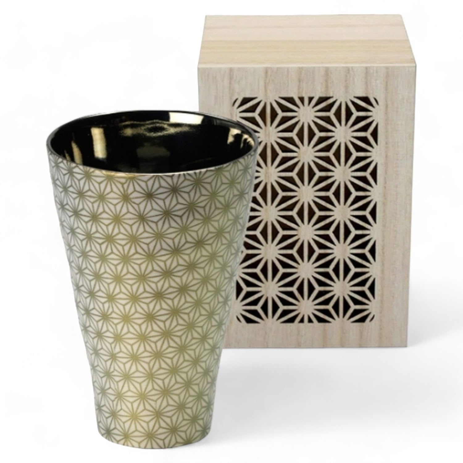 Пара золотых стаканов с деревянным дизайном в японском стиле J-kitchens, 350 мл, можно использовать в микроволновой печи, коробка, сделано в Японии