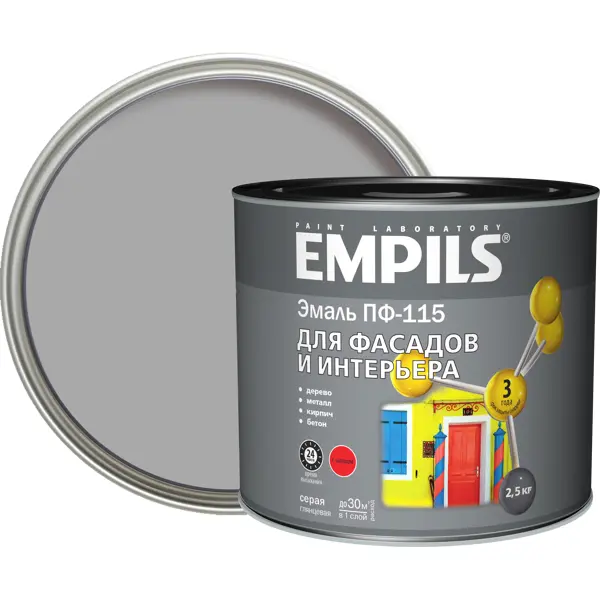 Эмаль ПФ-115 Empils PL глянцевая цвет серый 2.5 кг