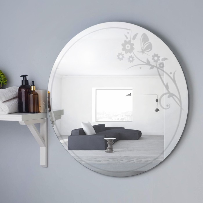 Зеркало, настенное, с пескоструйной графикой, 65х65 см