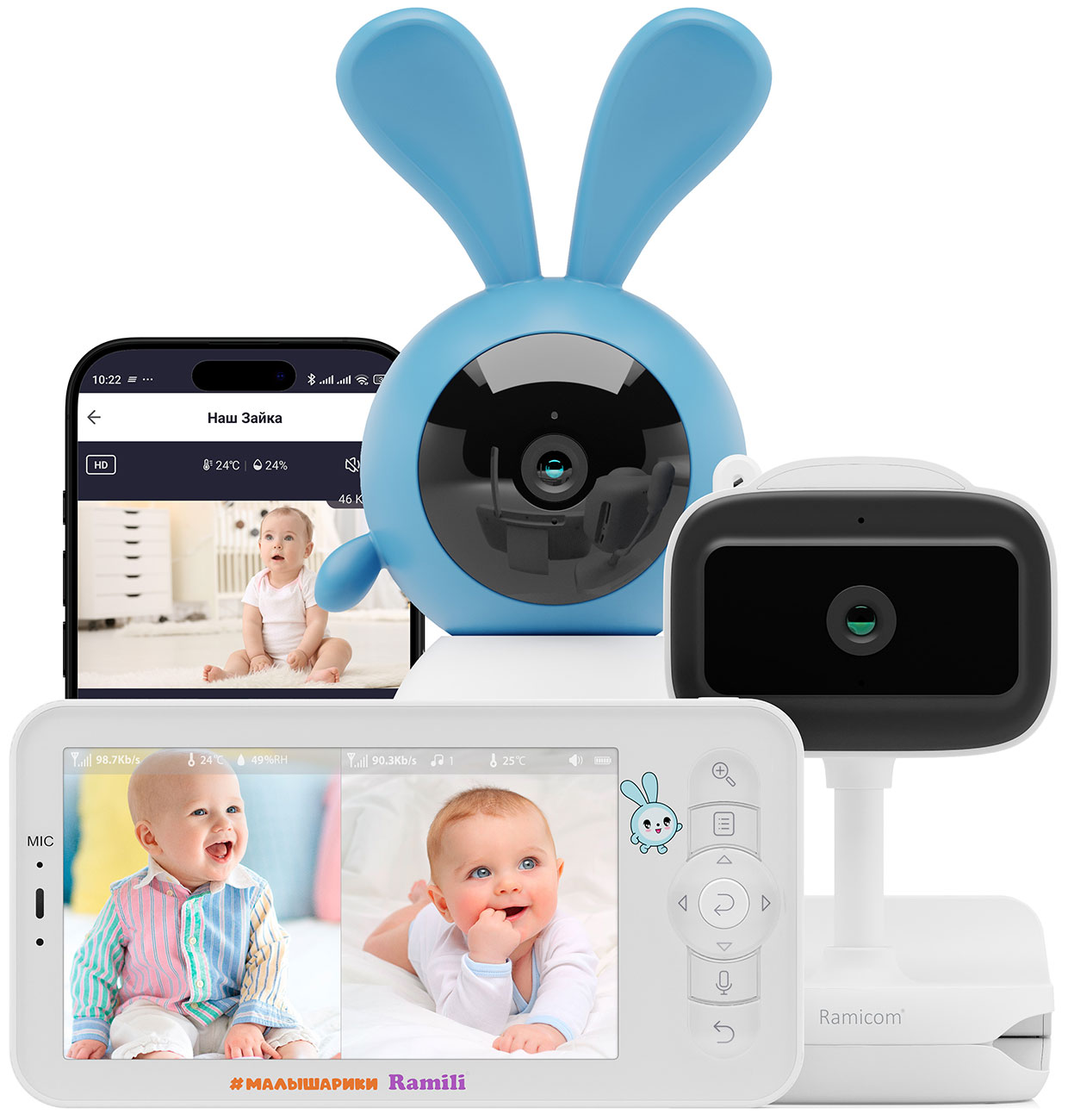 Видеоняня Ramili Baby Wi-Fi 2K RV100X2KROSH Крошик, Малышарики, с креплениями Видеоняня Ramili Baby Wi-Fi 2K RV100X2KROSH Крошик, Малышарики, с креплениями