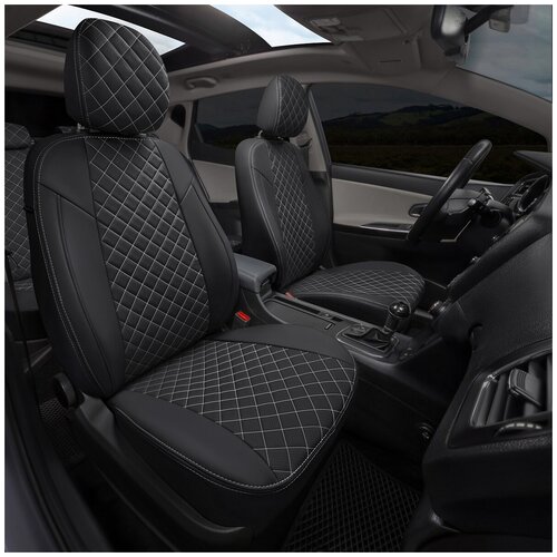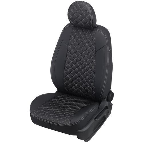 Чехлы Автопилот для KIA Ceed III с 18г. (40/60) комплектация Classic/Comfort/Luxe Ромб Экокожа Черный + Белая строчка