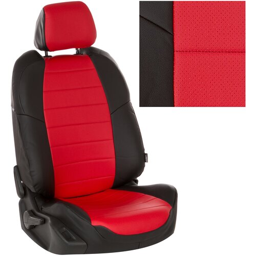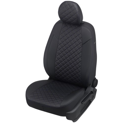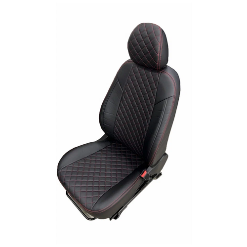 Чехлы на сидения KIA Spectra с 00-11г. / KIA Shuma II с 01-04г. Ромб Экокожа Черный + Красная строчка, Автопилот, ki-sp-sp-r