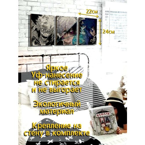 Модульная картина на дереве, размер 66x24, модель аниме моя геройская академия - 4033