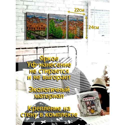 Модульная картина на дереве, размер 66x24, модель достопримечательности старый город Лозанна - 5014