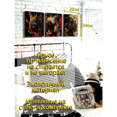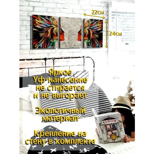 Модульная картина на дереве, размер 66x24, модель эзотерика близнецы - 5076