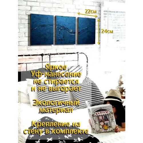 Постер на экокоже 40x40 LinxOne "Вода жидкий синий отражение Аква" интерьер для дома / декор на стену / дизайн