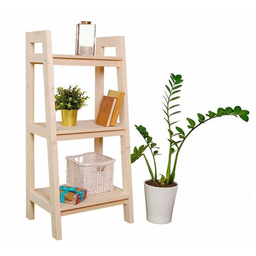 Стеллаж низкий, узкий, 3 полки, 1090х500х416мм, деревянный (Стиль "Лестница")