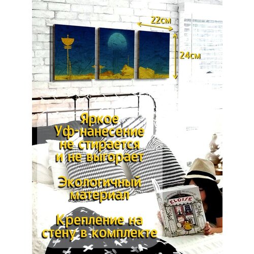 Модульная картина на дереве, размер 66x24, модель ночь пейзаж - 4086