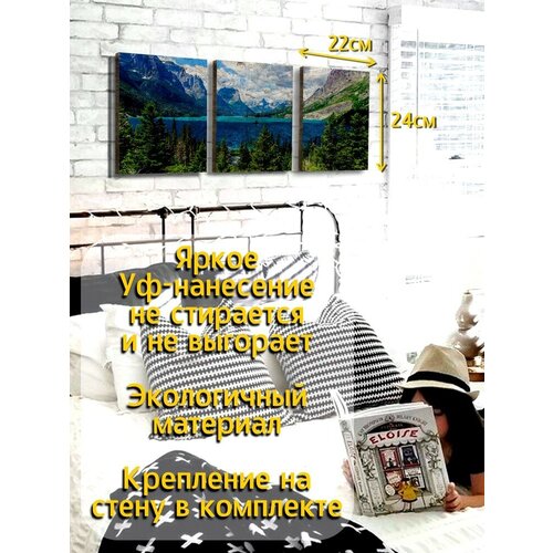 Модульная картина на дереве, размер 66x24, модель природа голубое озеро - 5056