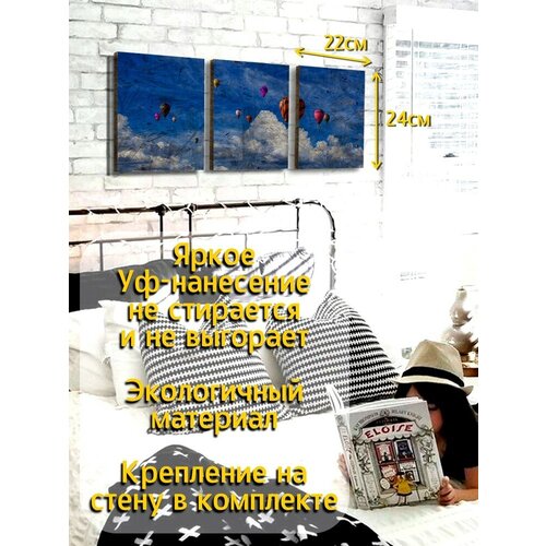 Модульная картина на дереве, размер 66x24, модель водушный шар панорама - 5008