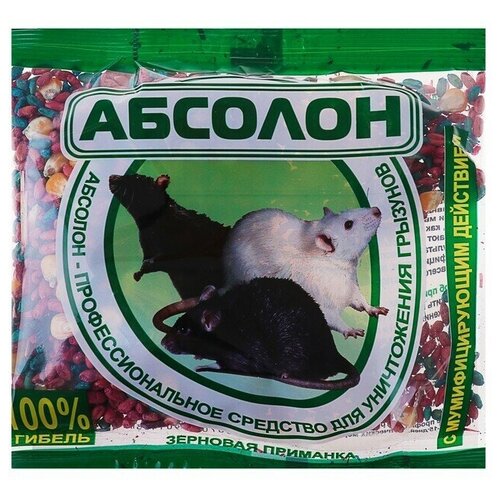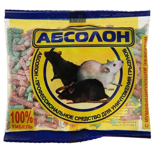 Абсолон 100 г, гранулы от мышей и крыс с мумифицирующим эффектом. Средство быстро избавит квартиру, дом или садовый участок от грызунов