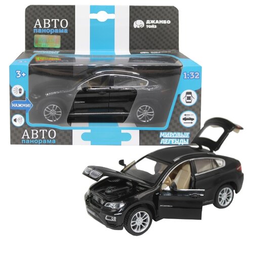 Машинка металлическая ТМ Автопанорама, BMW X6, масштаб 1:32, цвет черный, инерция, свет, звук, открываются двери, капот, багажник