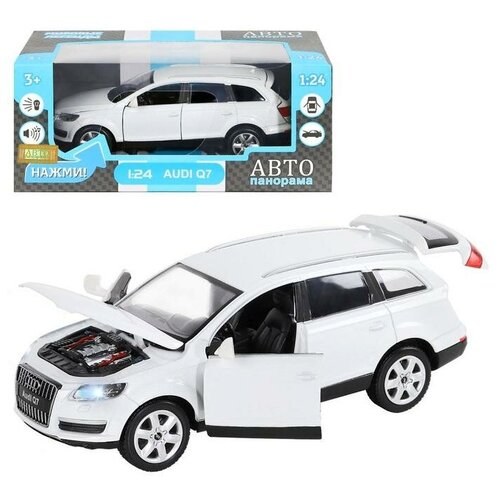 Машина металлическая Audi Q7 1:24, свобод ход колес, открываются двери, капот, багажник, световые и звуковые эффекты, цвет белый