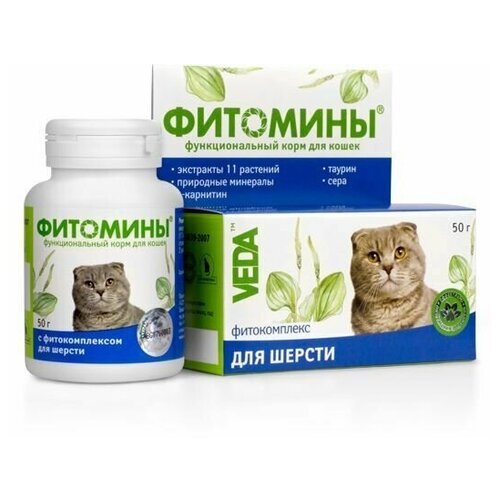 Фитомины, фитокомплекс для шерсти, для кошек, 50 г