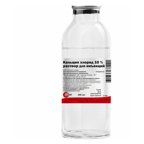 Кальция хлорид 10%, раствор для инъекций, 200 мл