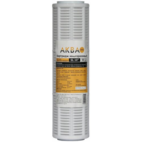 Картридж механической очистки из нейлоновой сетки Аква Про 10SL, многоразовый, 50 мкм